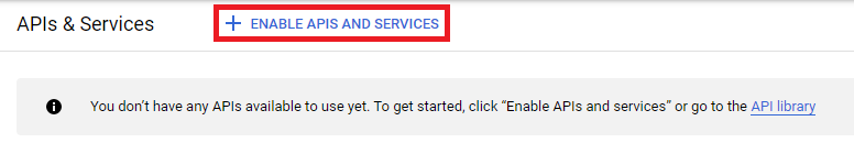 • Step 4: Click Enable Apis and Services button or select Library button on the left.