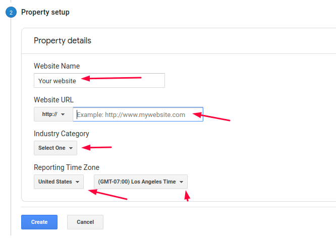 • Step 3: Click Create Property, **select Web and then Continue.**.