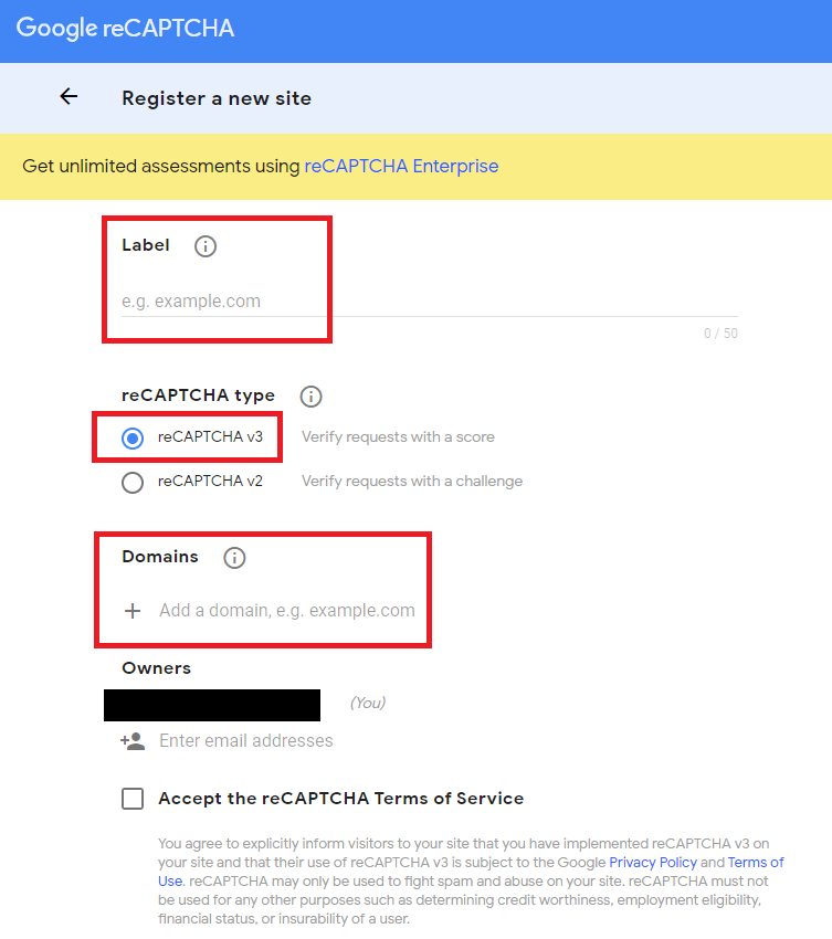 • Step 5: Accept the reCAPTCHA Terms of Service
